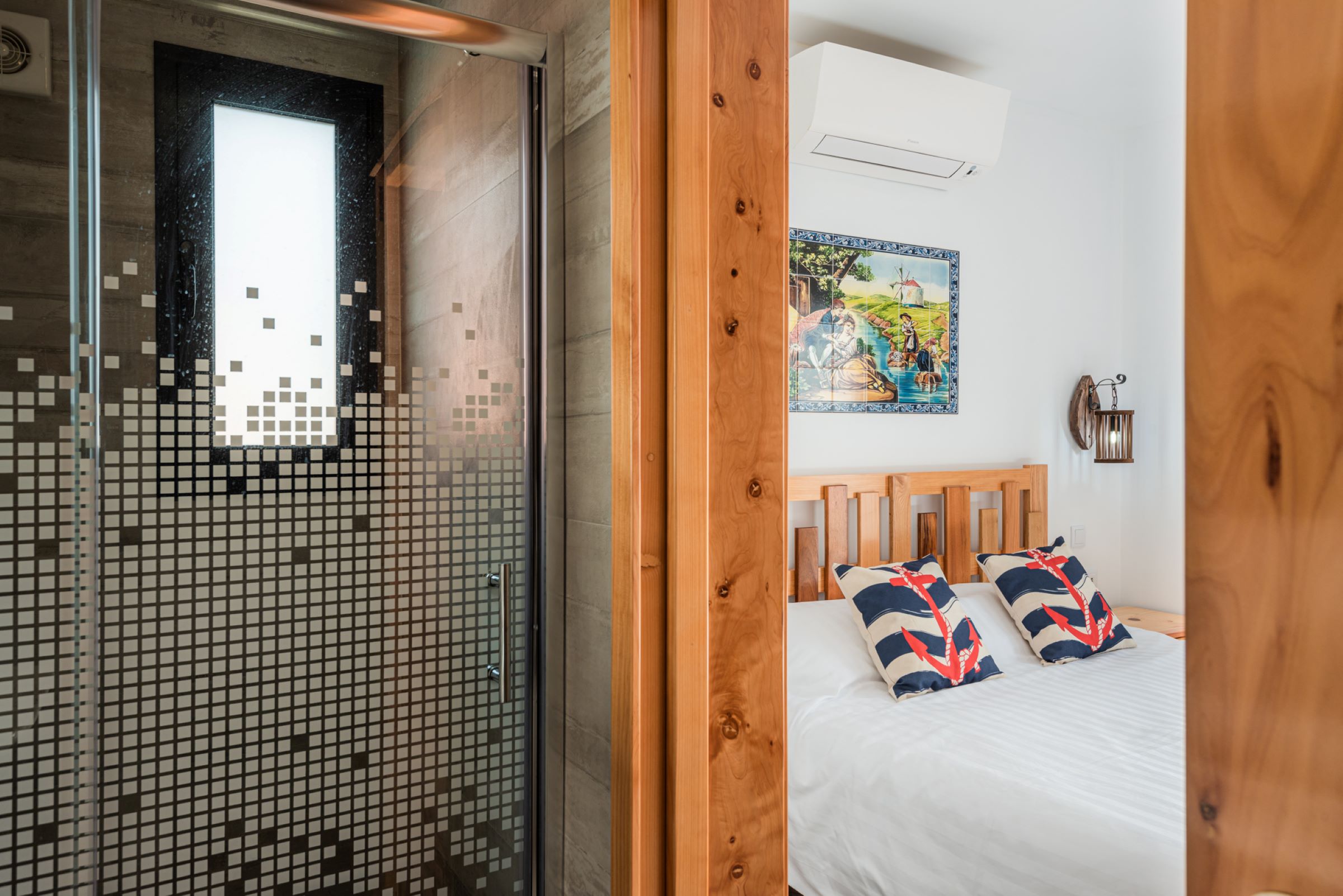 The Master Bedroom is furnished with a Custom made bed, manufactured by local craftsmen. Measuring 160cm wide.