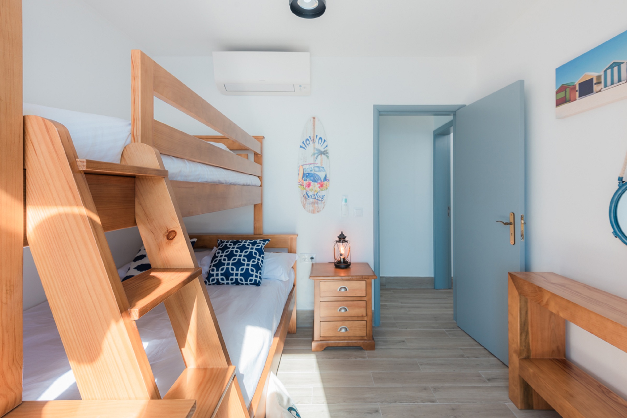 Furrnished with a very sturdy Twin / Full Bunk wooden bed, custom made to our design.